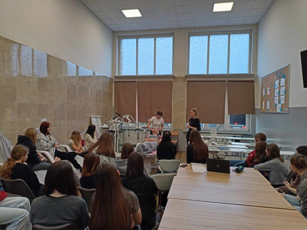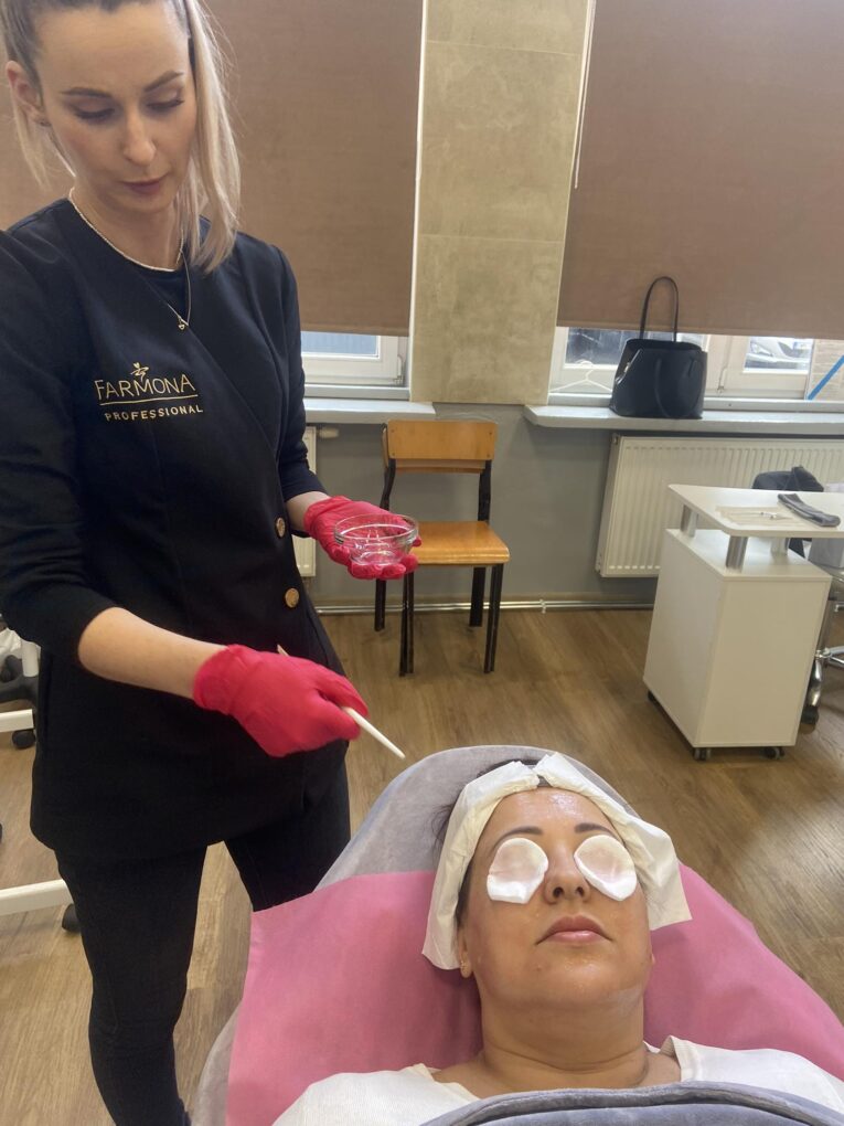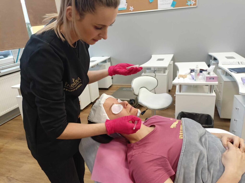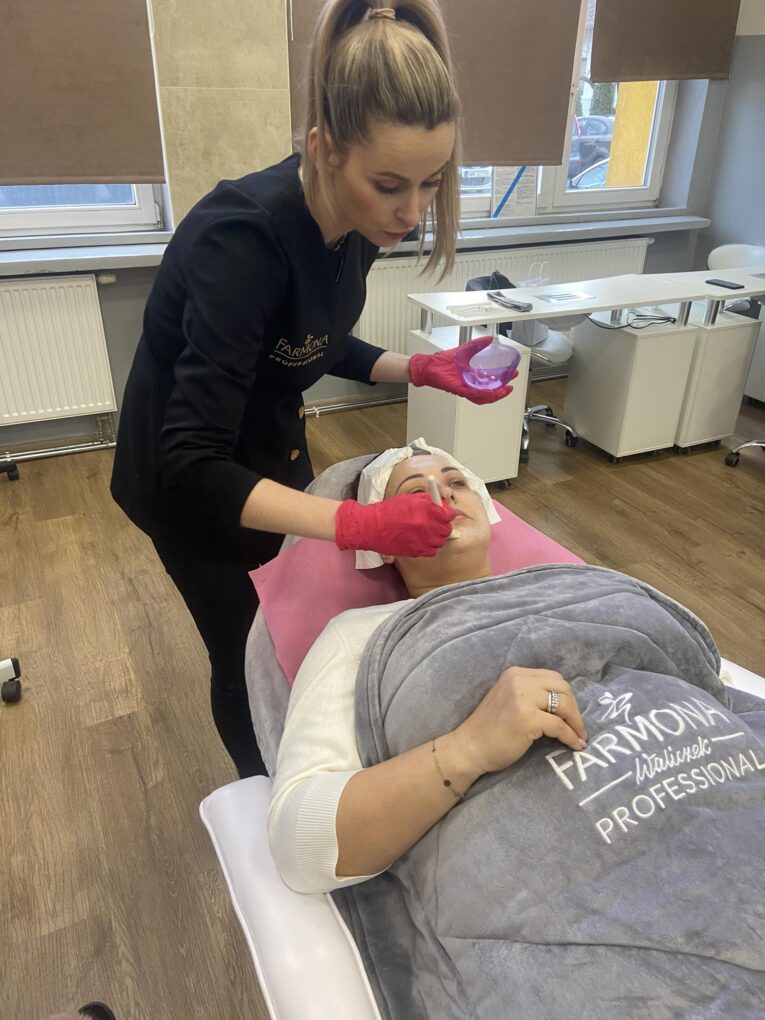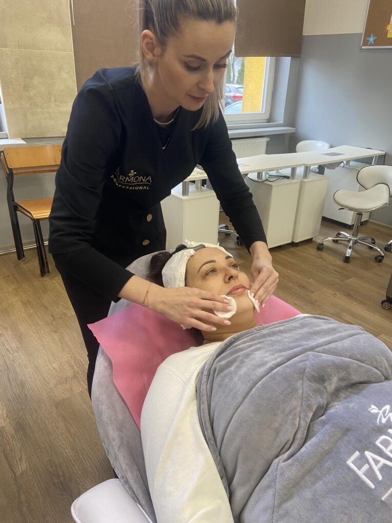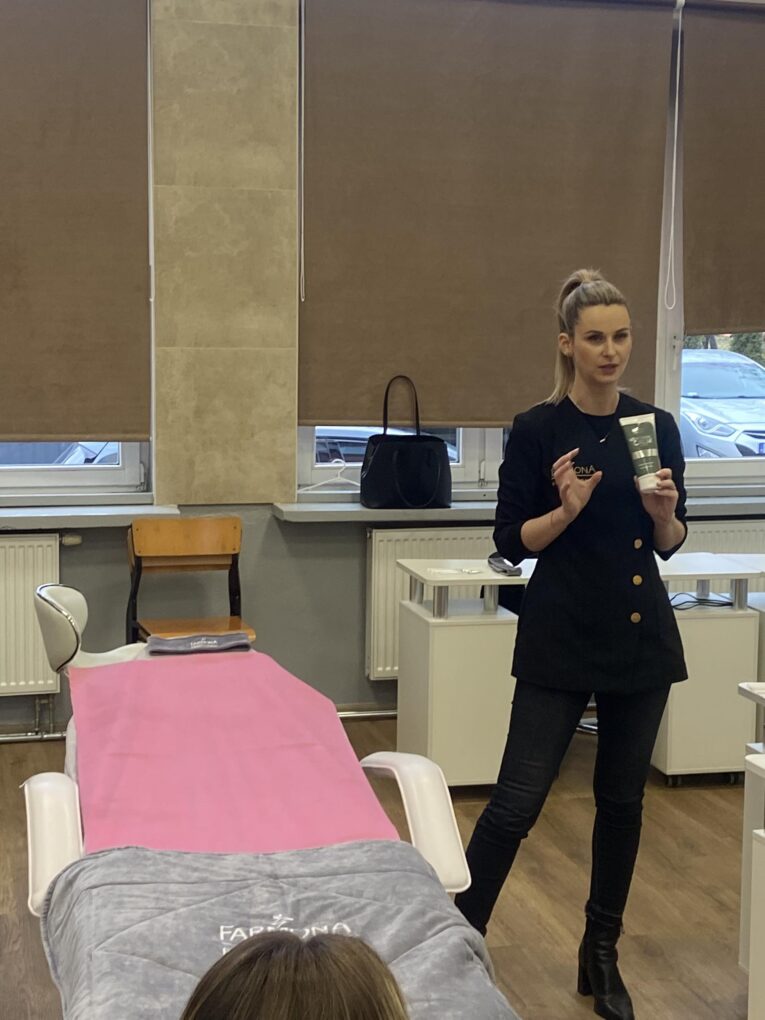 Dnia 07.02.24 w naszej szkole odbyło się szkolenie kosmetyczne marki FARMONA profesjonalny zabieg kwasowy.