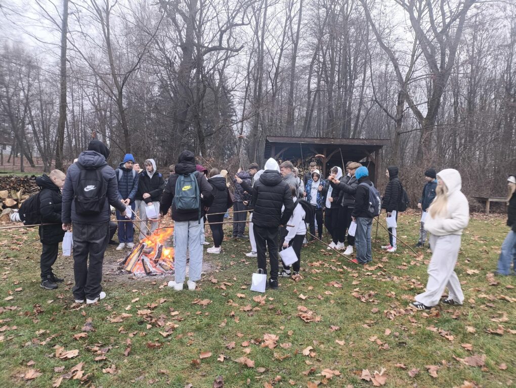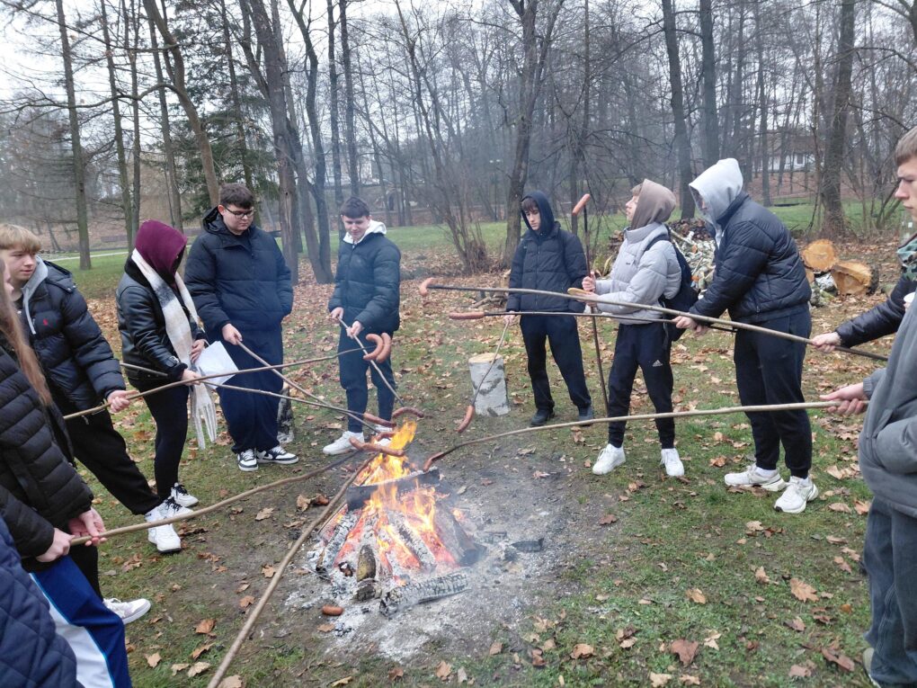Podczas zwiedzania muzeum uczniowie mieli okazję zapoznać się z historią polskiej wsi, dawnymi narzędziami rolniczymi oraz codziennym życiem minionych pokoleń. Edukację w terenie dopełniło wspólne ognisko, przy którym – w miłej i integrującej atmosferze – uczniowie mogli odpocząć, delektując się gorącym bigosem i kiełbaskami.