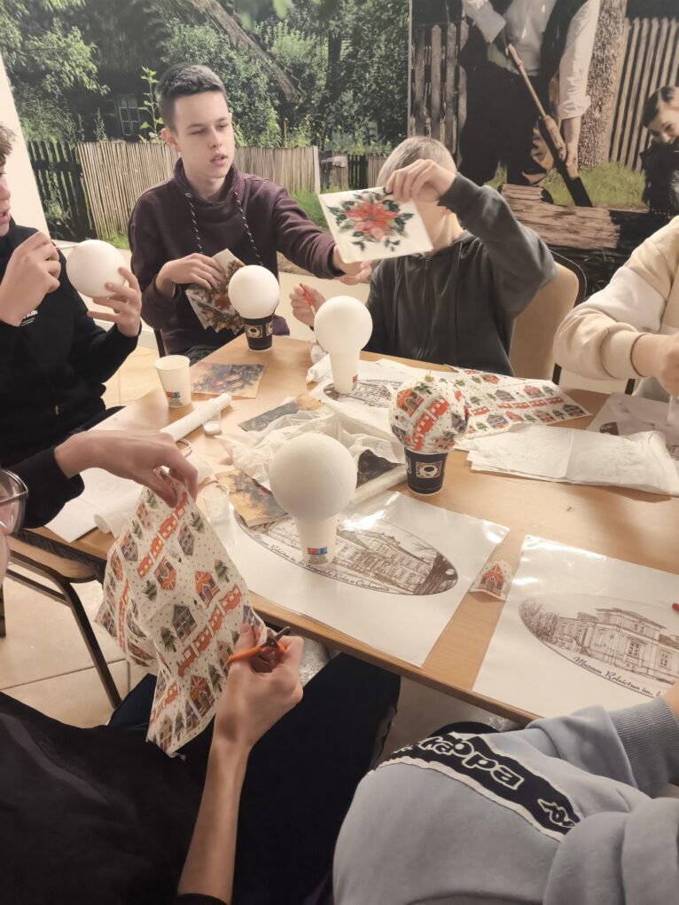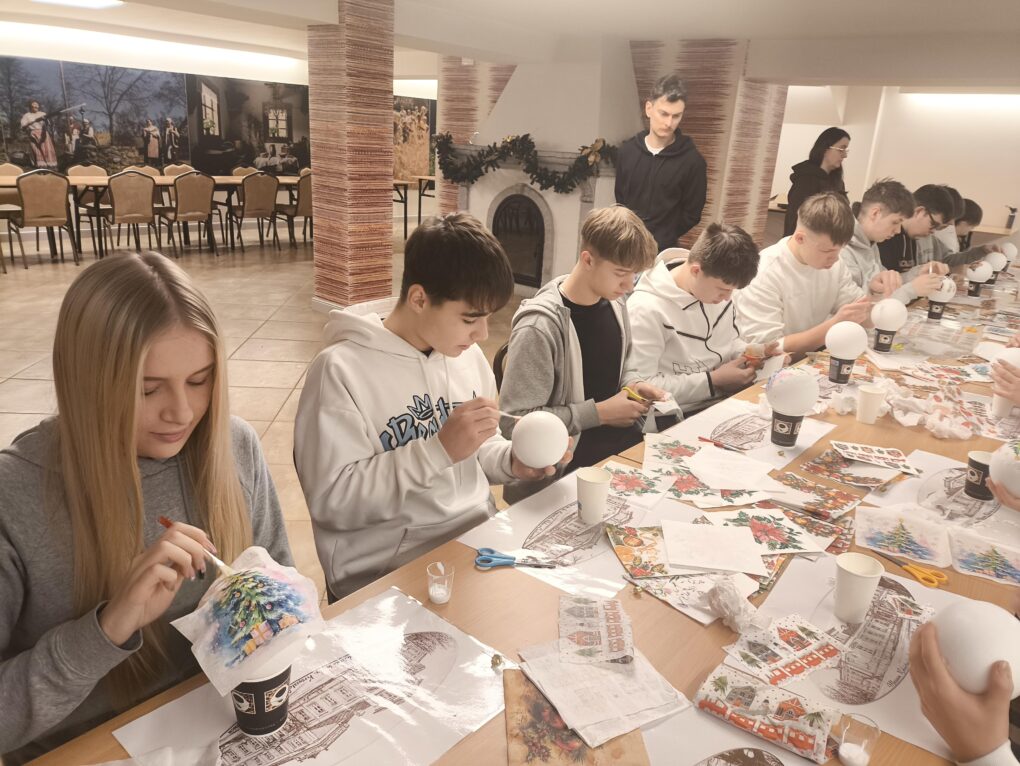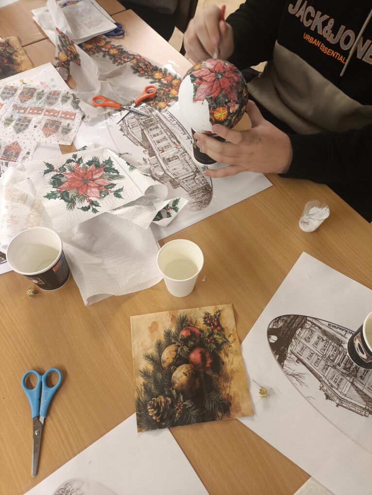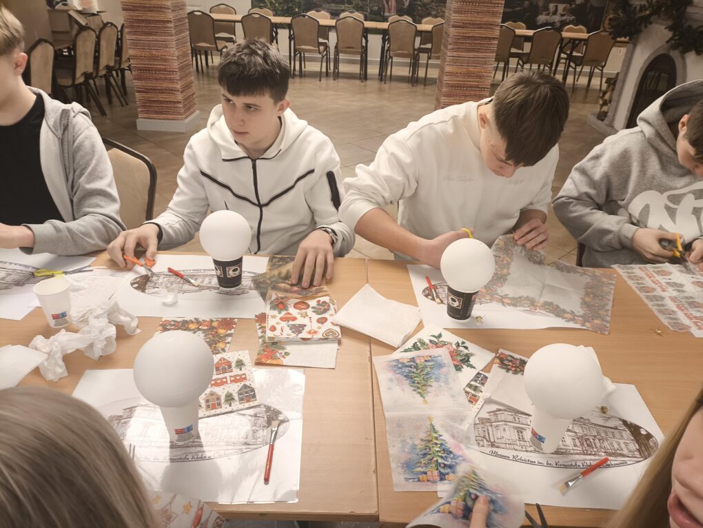 Szczególnym elementem programu były warsztaty rękodzielnicze, podczas których uczniowie wykonywali świąteczne dekoracje metodą decoupage oraz świece z naturalnego wosku. Zajęcia te doskonale wpisały się w atmosferę nadchodzących świąt, a własnoręcznie przygotowane ozdoby stały się nie tylko piękną pamiątką z wyjścia, lecz także okazją do rozmowy o tradycjach bożonarodzeniowych i znaczeniu pracy manualnej.