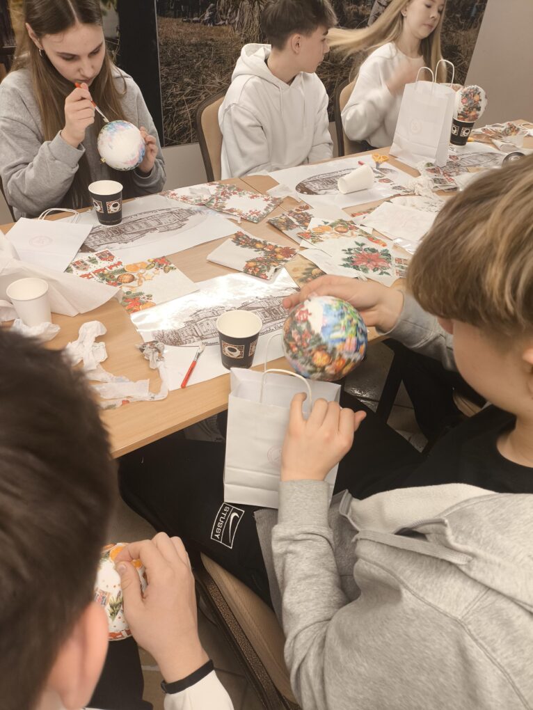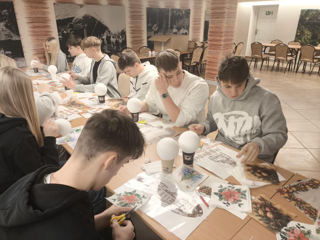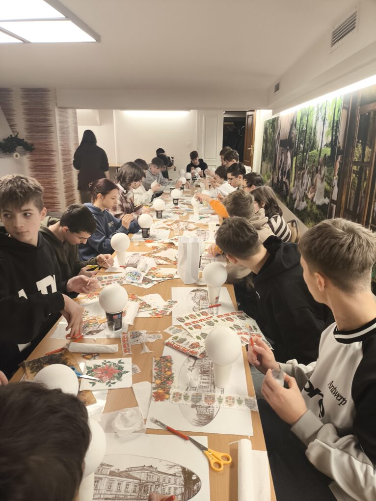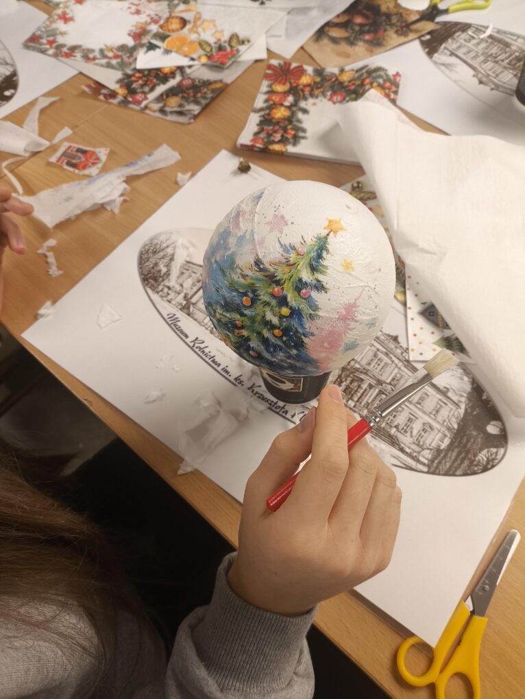 Szczególnym elementem programu były warsztaty rękodzielnicze, podczas których uczniowie wykonywali świąteczne dekoracje metodą decoupage oraz świece z naturalnego wosku. Zajęcia te doskonale wpisały się w atmosferę nadchodzących świąt, a własnoręcznie przygotowane ozdoby stały się nie tylko piękną pamiątką z wyjścia, lecz także okazją do rozmowy o tradycjach bożonarodzeniowych i znaczeniu pracy manualnej.