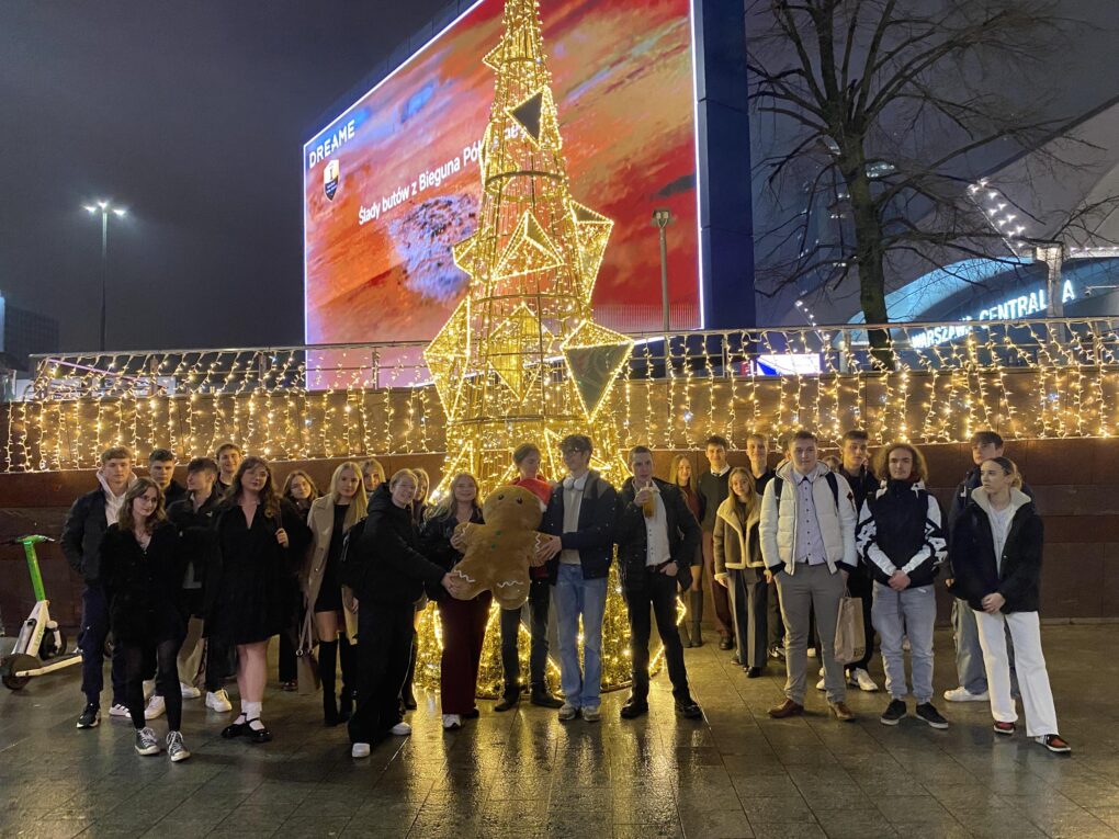 10 listopada 58 uczniów naszej szkoły wyruszyło na wyjątkową wycieczkę do Warszawy, zorganizowaną w ramach projektu „Wyjście z klasą” finansowanego przez Ministerstwo Edukacji Narodowej. Od samego początku uczestnikom towarzyszyła wyjątkowa, przedświąteczna atmosfera, która sprawiła, że dzień ten na długo pozostanie w naszej pamięci.