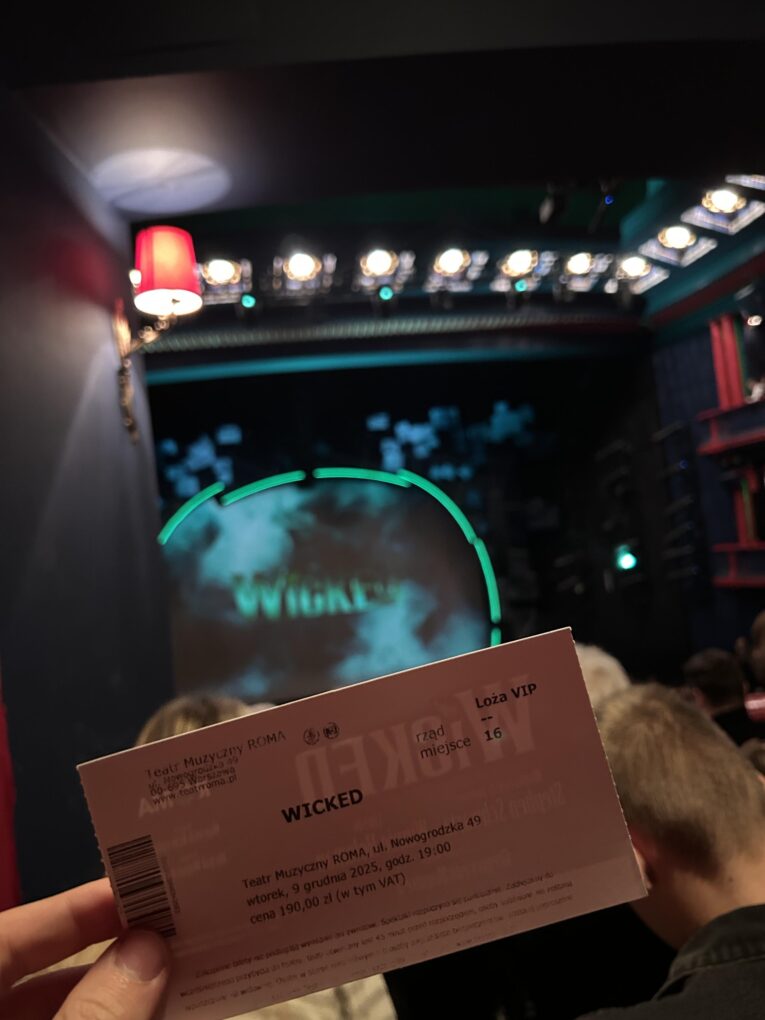 Najważniejszym punktem naszej wycieczki był jednak spektakl w teatrze muzycznym Roma pt. „ Wicked”. Jest to musical fantasy oparty na powieści „ Czarnoksiężnik z Krainy OZ”. Spektakl wywołał oszałamiające wrażenia. Kostiumy, choreografia, dekorację, efekty specjalne oraz gra aktorska w spójnej całości tworzyły niesamowity spektakl dla widza w każdym wieku. Byliśmy pod niesamowicie zadowoleni z seansu.