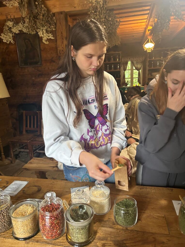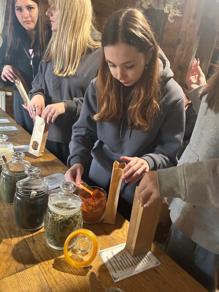 Podczas pobytu uczniowie wzięli udział w warsztatach herbacianych, podczas których wysłuchali ciekawego wykładu o właściwościach różnych roślin i ich wpływie na zdrowie. Następnie każdy mógł samodzielnie skomponować własną, niepowtarzalną mieszankę herbacianą, dobierając zioła według smaku i zapachu. Kolejnym punktem programu były warsztaty z przypraw, które pozwoliły uczniom lepiej poznać zastosowanie aromatycznych dodatków w kuchni.